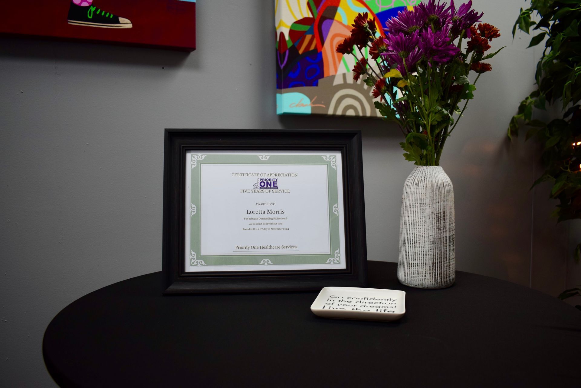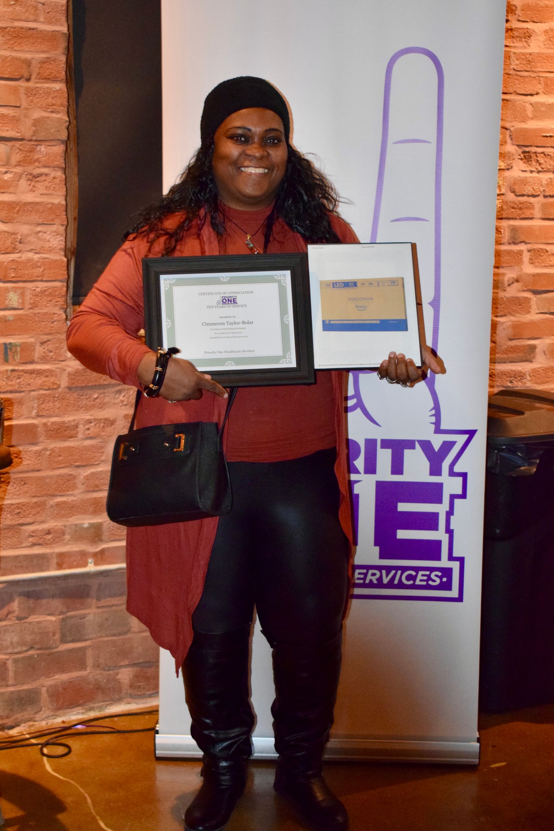 A Woman in A White Coat Is Holding a Certificate — Saint Louis, MO — Priority One Healthcare Services
